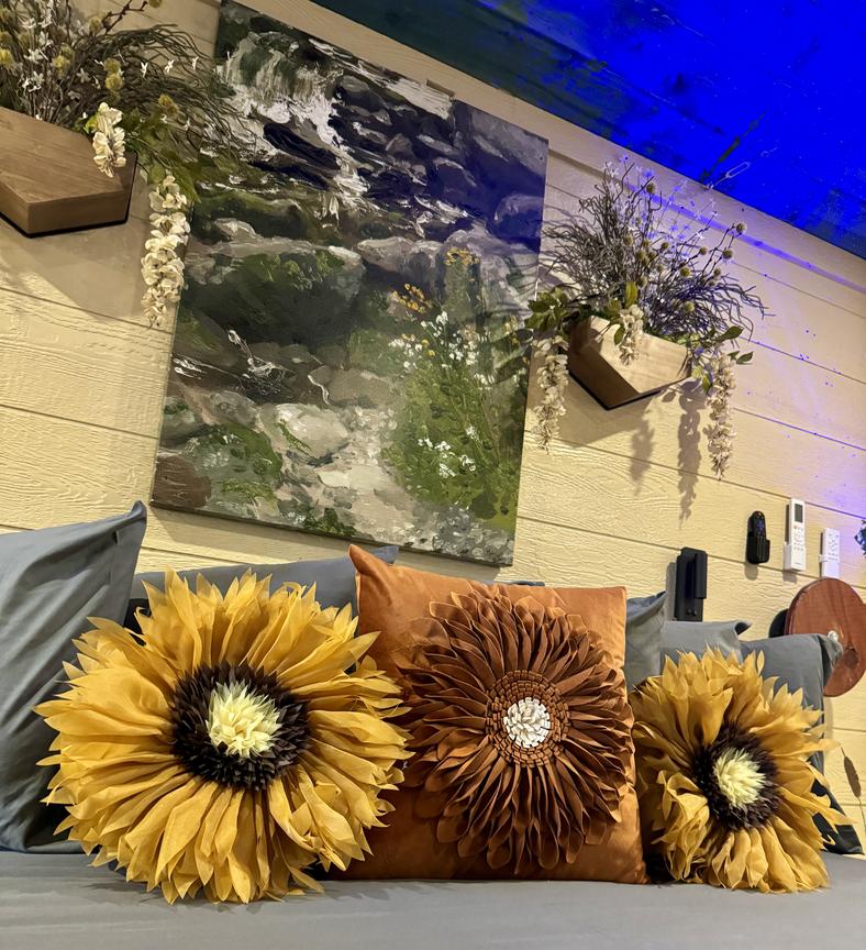 Proudly named after an award-winning oil painting by local artist and the Jensen family's daughter, Ava Jensen, Among the Wildflowers pays homage to the Friends of the Smokies and Plein Air. Ava's masterpiece, created live in the Elkmont area of the Smoky Mountains National Park, was auctioned to raise funds for the National Park. It serves as both the centerpiece for the decor and the inspiration behind the charm of the Among the Wildflowers treehouse.
