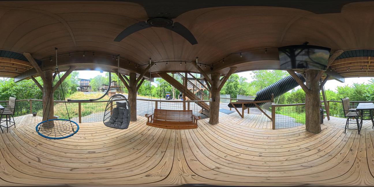 Accommodating up to 6 guests, The 19th Hole is not just a haven for golf enthusiasts! Unwind by the outdoor wood-burning fireplace as you sizzle steaks on the gas grill, or take a thrilling ride down the 20-foot slide to the lower deck. Discover swings, rope climbs, escape hatches, secret ladders, bucket pulleys, and more!