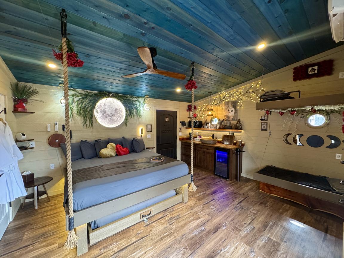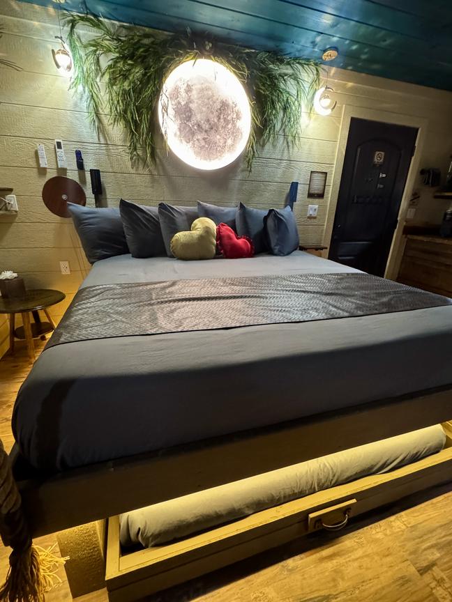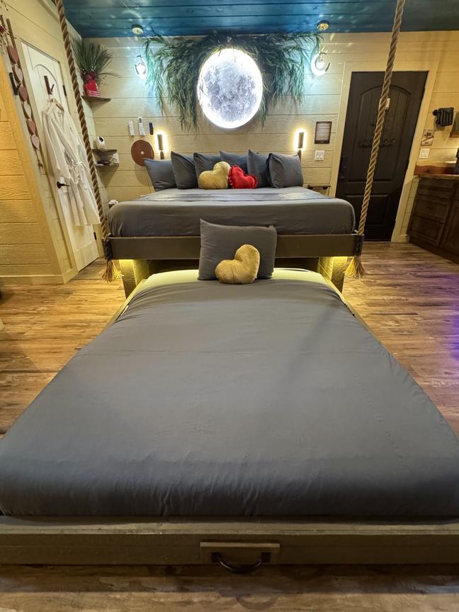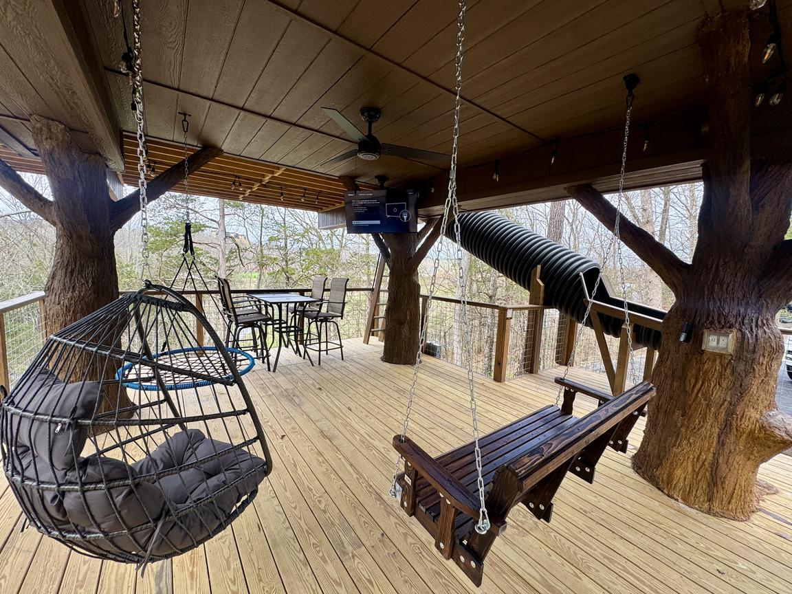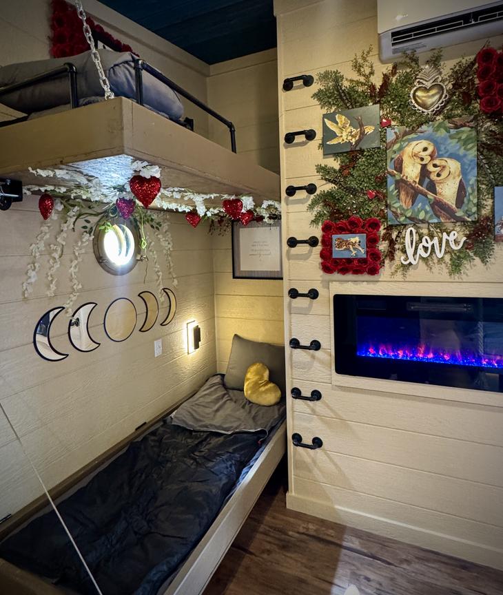 As a TreeFort, Owl Always Love You includes all of our world-renowned interactive features, seamlessly woven into the experience. Guests can race down a 20-foot slide, climb and explore using rope climbs, swings, secret ladders, and escape hatches, send drinks through the drink chute, hoist treasures with the bucket pulley, and discover hidden beds and interactive furniture tucked throughout the space. It’s adventure, play, and creativity layered into every level—fun for kids and adults alike.