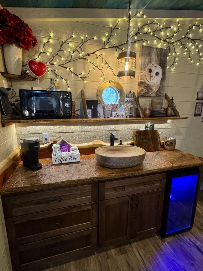 Nestled deep within the trees, Owl Always Love You is our newest wooded TreeFort, currently in its theming stages and now available to reserve for stays beginning March 15, 2026. Designed for those who feel most at home in nature, this treehouse is shaping up to be one of our most heartfelt and creatively layered experiences yet.